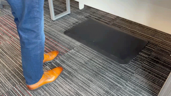 Foot activated mat, which allows the mat to glide easily under the desk. Truly power at your toe-tips.